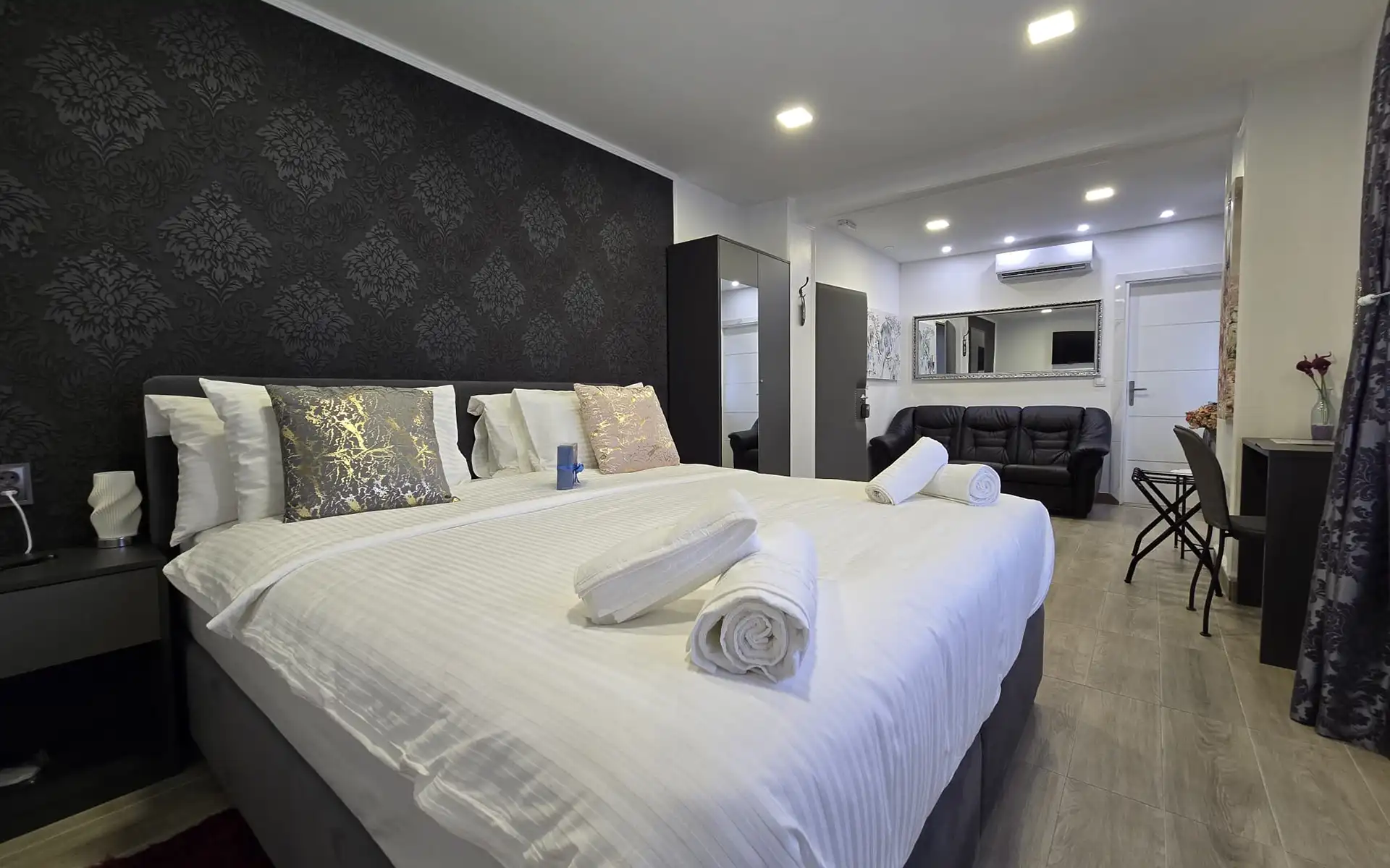 Deluxe Suite predstavlja vrhunac udobnosti i prostranosti u ponudi smještaja Alsago Lux-a. Ova elegantno uređena jedinica idealna je za grupu prijatelja ili goste koji žele više prostora i privatnosti tijekom boravka u Zagrebu. Idealna za mladence!