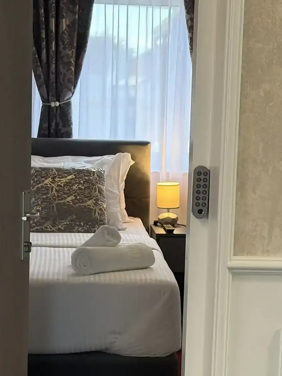 Soba ima stol i prostor za kofer. Soba se svakodnevno pažljivo održava kako bi zadržala visoke standarde čistoće i udobnosti. Jednokrevetna soba Alsago Lux-a idealna je kako za kraći boravak tako i za dulje opuštanje, nudeći diskreciju, mir i sve što je potrebno za doista ugodan i bezbrižan boravak. Ulazak u sobu smo pojednostavnili time sto nema kartica niti dodatnih ključeva vec soba ima kod koji samo vi koristite tijekom svog boravka.