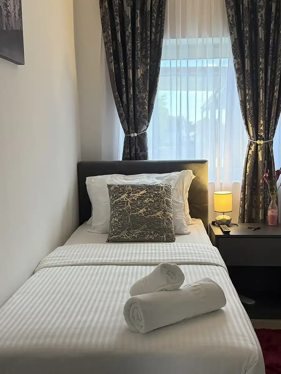 Jednokrevetna soba Alsago Lux-a predstavlja savršen odabir za osobe na proputovanju koji cijene mir, čistoću i vrhunsku udobnost u neposrednoj blizini Zagreba. Elegantno uređena i opremljena s posebnom pažnjom na detalje. Ova soba gostima jamči maksimalan komfor tijekom cijelog boravka, bilo da je riječ o kraćem poslovnom putovanju ili duljem privatnom odmoru.